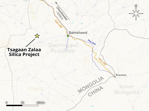 Figure 1. Location of the Tsagaan Zalaa Silica Project in Southern Mongolia