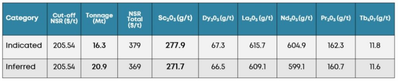 Chart 1: Defined Resource at the Crater Lake Project owned by Scandium Canada. Source: NI 43-101 Technical Report and Updated Mineral Resource Estimate for the Crater Lake Project, Quebec, Canada: Marina Lund, P.Geo., M.Sc., Simon Boudreau, P.Eng., Marc R. Beauvais, P.Eng: 2025