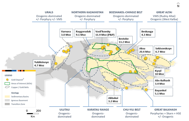 Figure 1: Areas of Interest subject to the Agreement. Two proven, underexplored mineral belts