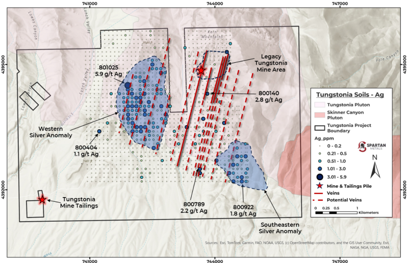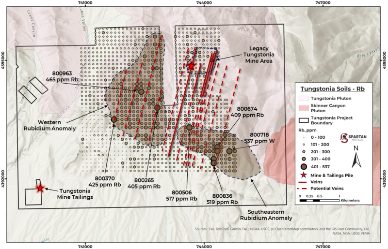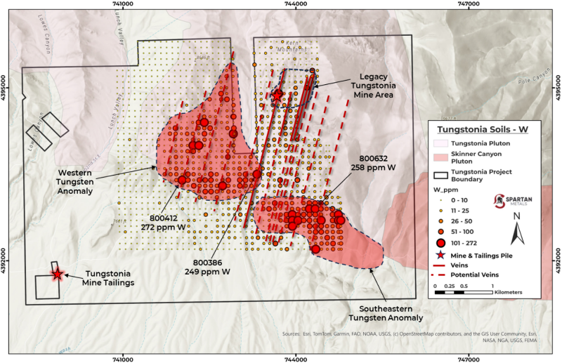 Mr. Marsh continues, ‘The strength and extent of the anomalies — in some cases exceeding those observed around the past-producing Tungstonia mine — highlight the potential for a significantly larger mineral system than historically recognized. These new targets strengthen Spartan’s position within the U.S. critical minerals onshoring landscape. Our team is eager to continue working with our data to generate meaningful drill targets for a drill program in the spring of 2026.’