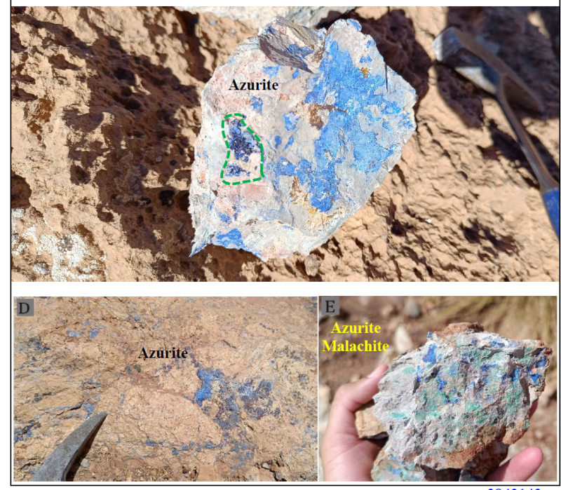 Figures 3a-c; Azurite, malachite mineralization and Figures 4a-c Gelna mineralization.