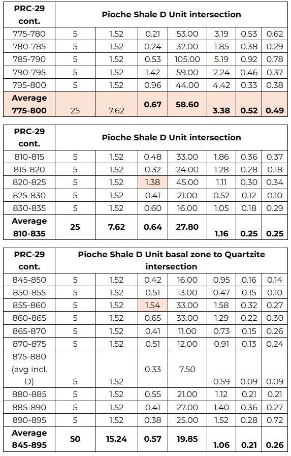 Table 1: Significant Assays Results for Drill Holes PRC 26 – 30
