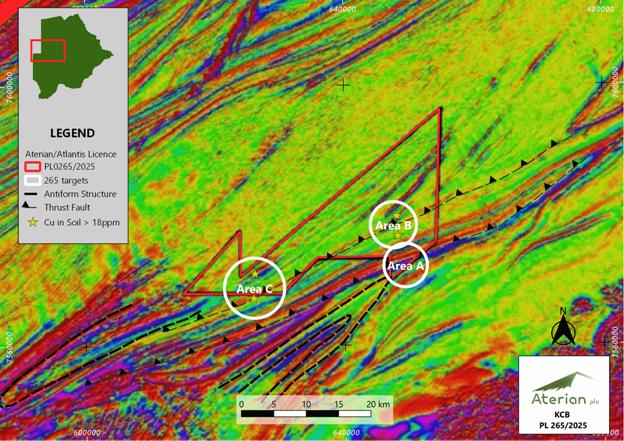 Aterian Plc (AIM: ATN), the Africa-focused critical metals exploration company, is pleased to announce encouraging results from an independent geophysical study completed over Prospecting Licence PL265/2025 (‘Licence’) in the Kalahari Copperbelt (‘KCB’), in the Republic of Botswana (‘Botswana’). The Licence is wholly owned by Atlantis Metals (Pty) Ltd, in which Aterian has a 90% interest. The award of the Licence was previously announced on 15 December 2025.