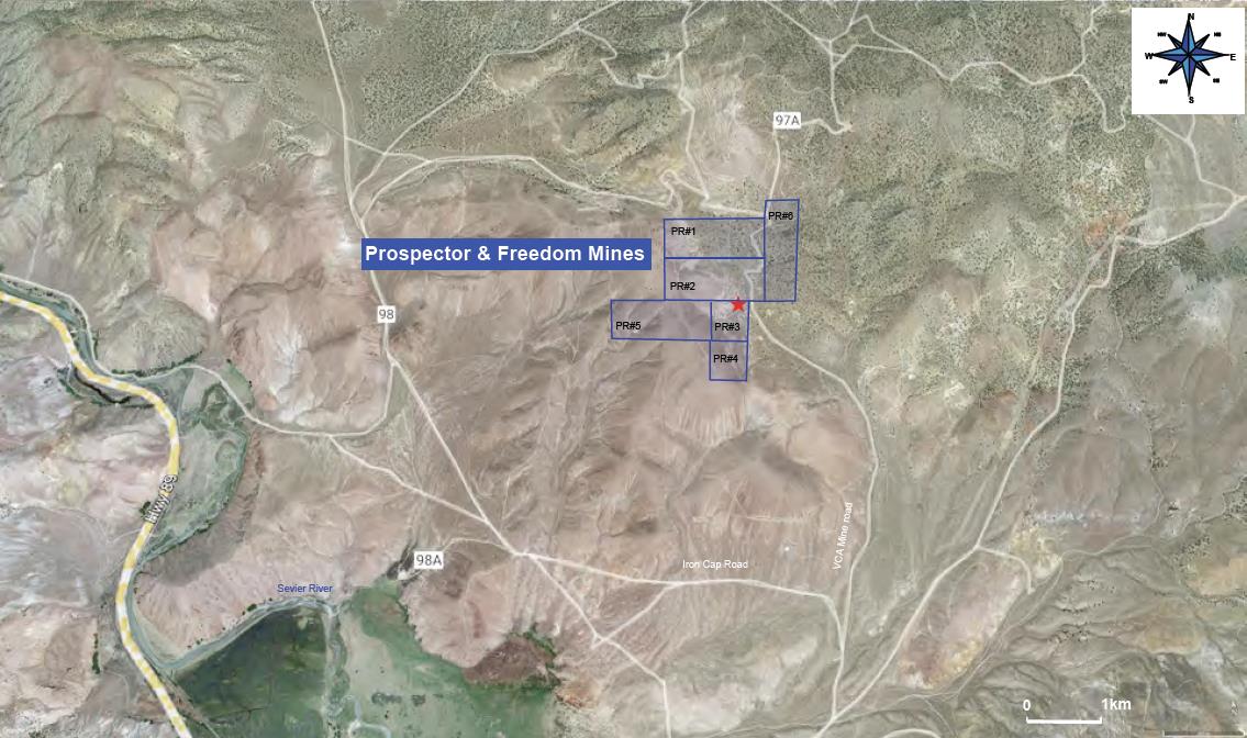 Figure 1: Location Map of the Prospector and Freedom Mines Project in Utah, USA.