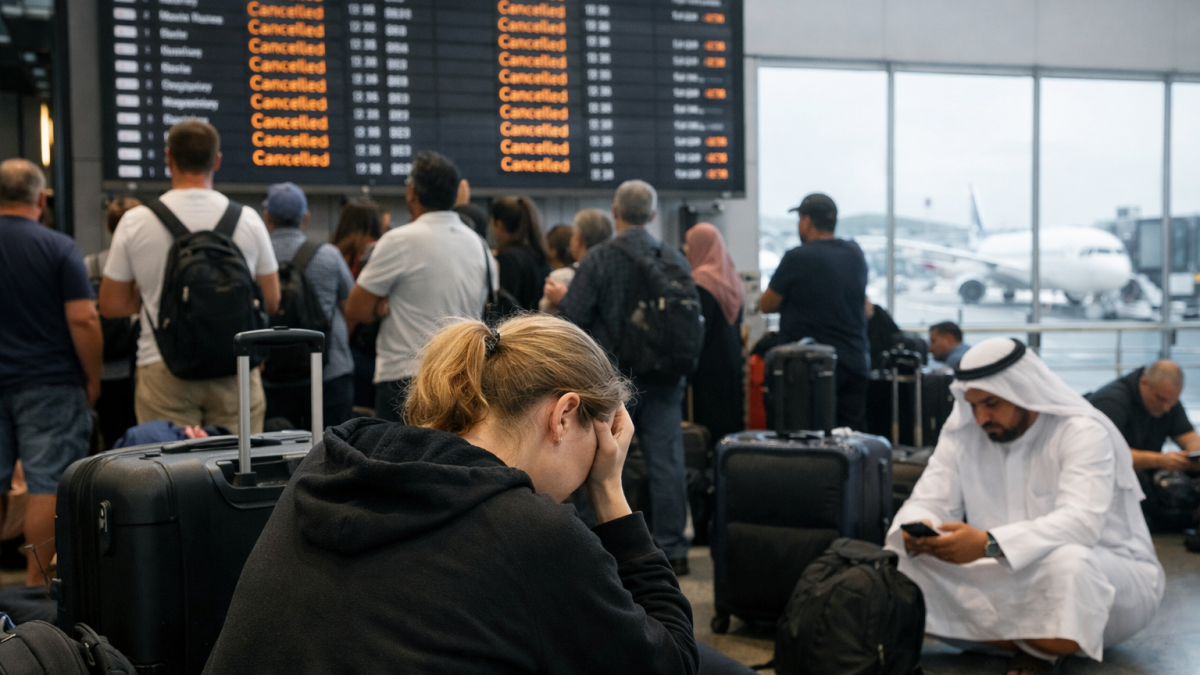 Reports indicate that hundreds of thousands of travellers were affected as airlines cancelled flights connecting the Middle East with Europe, Asia, and North America.
